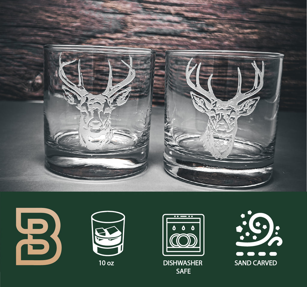 • Intricate Design: Expertly crafted using traditional sand-carving techniques, each glass features a detailed and durable deer design that stands out with sophistication.